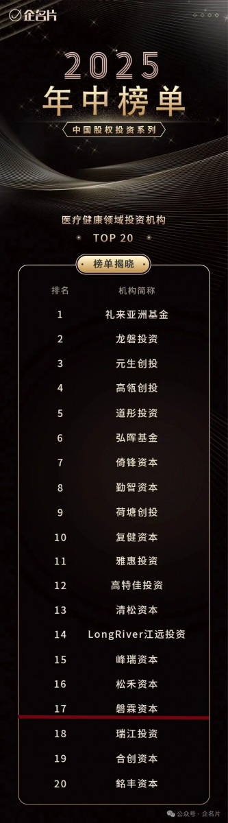 近期,企名片、母基金研究中心、母基金周刊等风险投资领域权威机构陆续发布年度及细分领域等多个榜单,磐霖资本及团队蝉联相关榜单,分别获评: