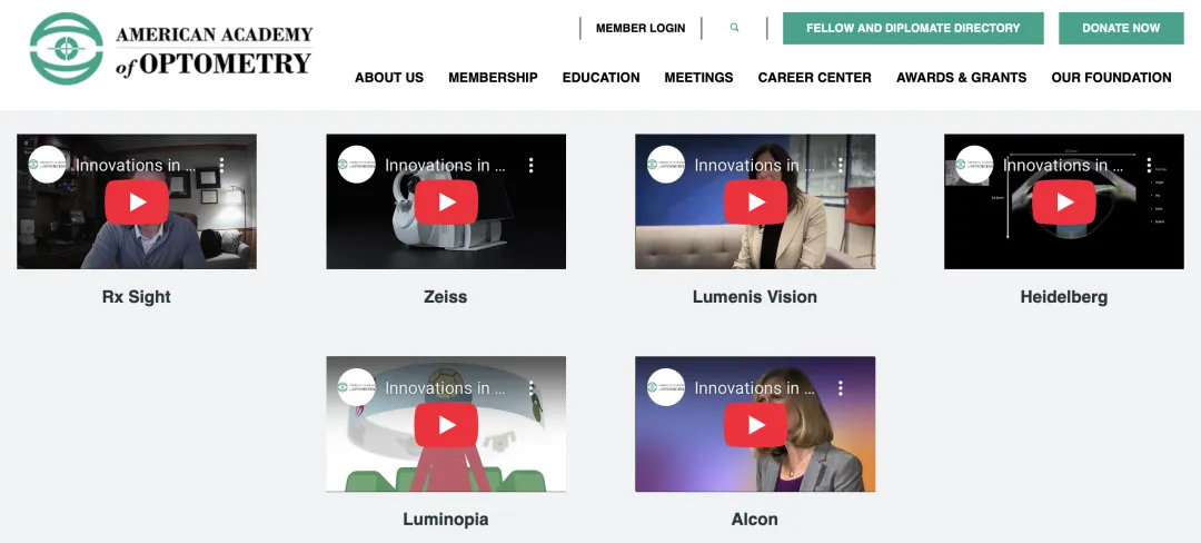 本届年会上,根据官网展示,除获此殊荣的还有以下企业及产品:美国 Orasis 的老视滴眼液 QLOSI ,以色列 Lumenis 的 OptiLIFT 干眼治疗系统,美国 EYEXY 的 Gaudi Profilometer 角巩膜地形图仪,法国 EssilorLuxottica 的 Varilux Immersia 老视渐进镜片等。