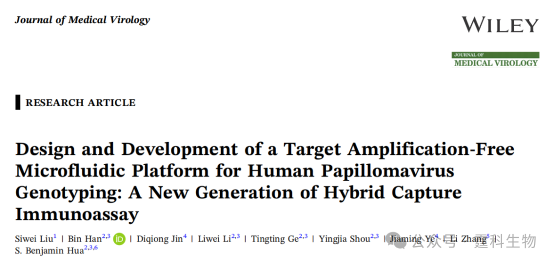 相关工作于2025年11月,以“Design and Development of a Target Amplification-Free Microfluidic Platform for Human Papillomavirus Genotyping: A New Generation of Hybrid Capture Immunoassay”为题,发表在《Journal of Medical Virology》期刊上。