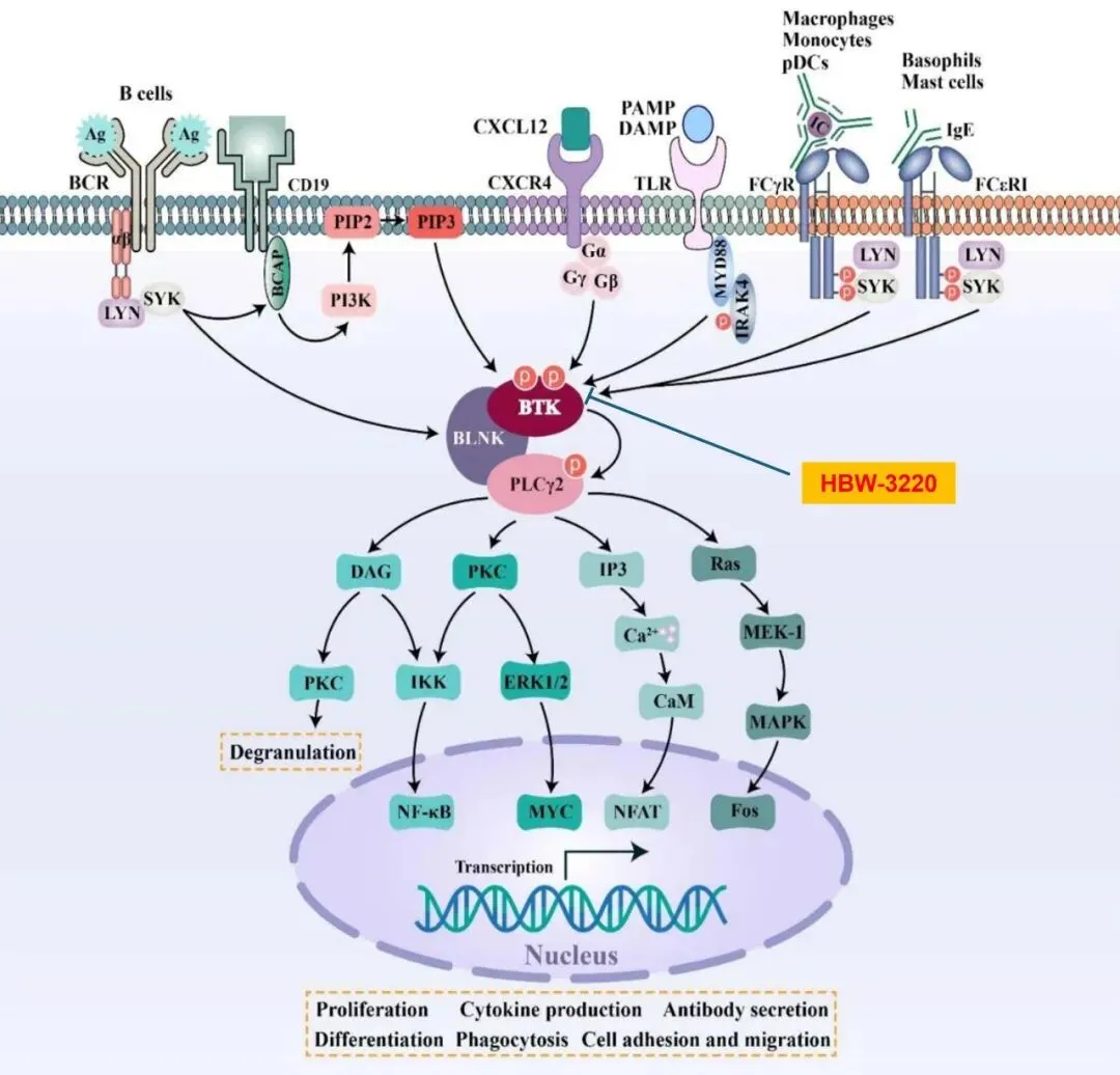 作为海博为药业自主研发的核心成果,HBW-3220 胶囊凭借 “可逆、非共价” 的分子设计与 “四代 BTK 抑制剂” 的技术定位,从根源上破解了当前 BTK 抑制剂治疗领域的核心痛点 ——耐药难题。相较于前三代 BTK 抑制剂普遍受制于 C481S 突变耐药的局限,HBW-3220 胶囊实现了 “跨代突破”:不仅能高效克服 C481S 突变耐药,更对临床中新出现的 L528W、T474I 等多种耐药突变展现出优异的抑制效果,为B细胞淋巴瘤患者提供更多优质的用药选择,有望填补全球百亿级 BTK 抑制剂后续治疗市场的空白。